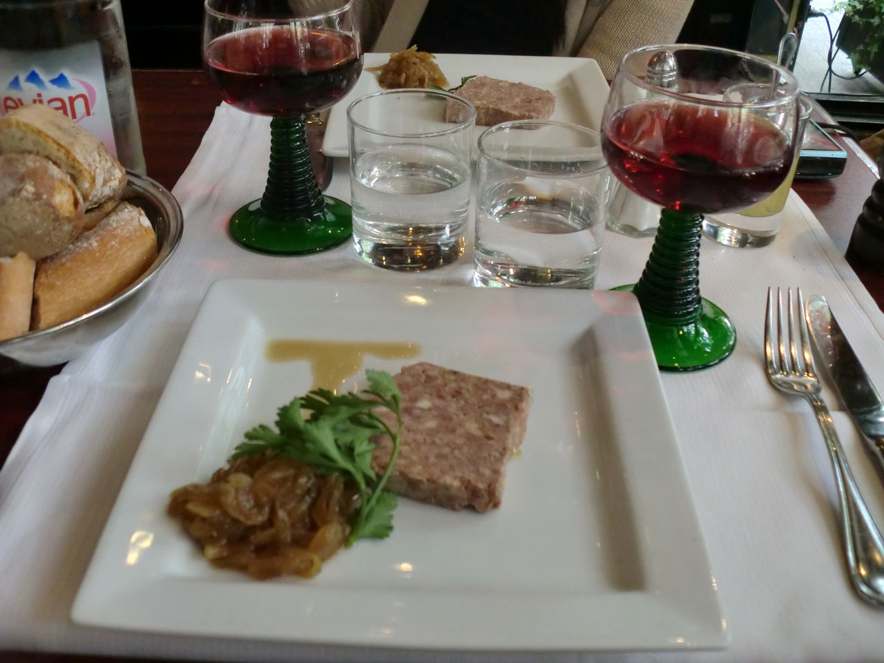 確かワイン1/4とお水、前菜、メイン、デザートで25ユーロくらいと安かったので。