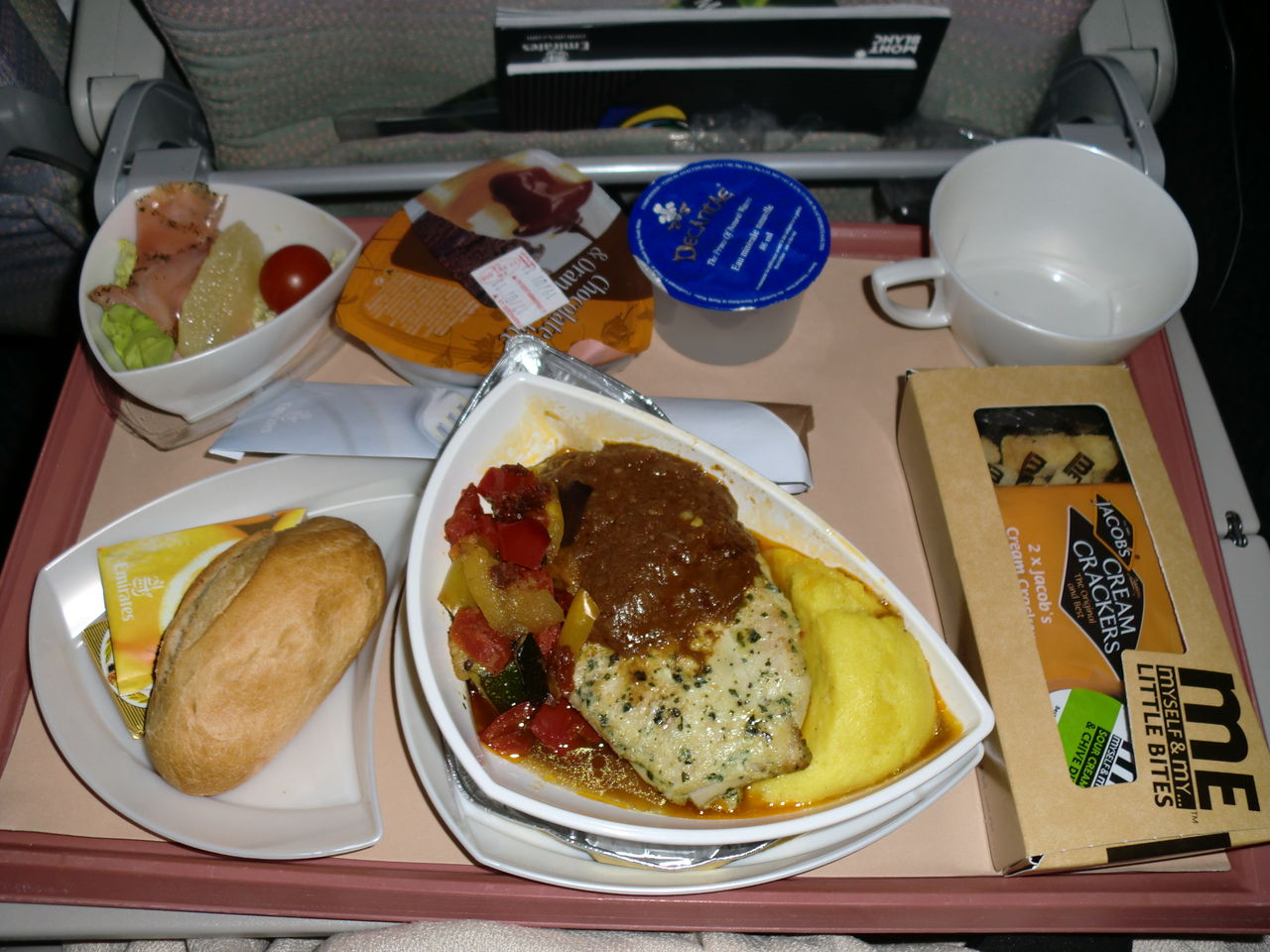 普段は食べないけど、ちょっと食べてみましたが、機内食にしてはかなりいい方だと思う。