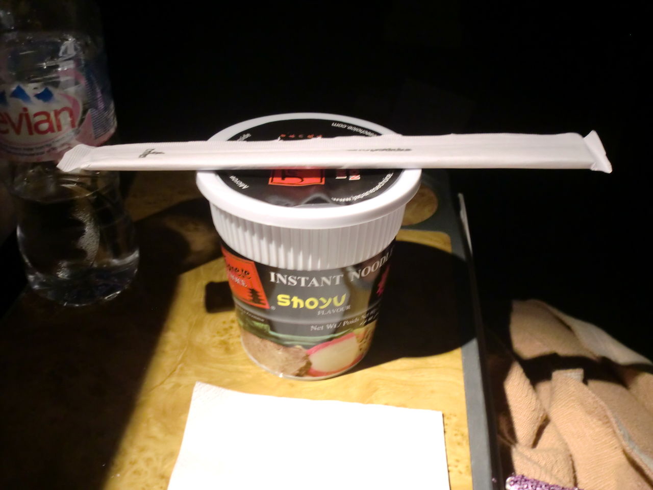 カップ麺も日本のカップ麺に比べたら負けちゃうけど、飛行機で食べる麺って結構好きなんだよねー。