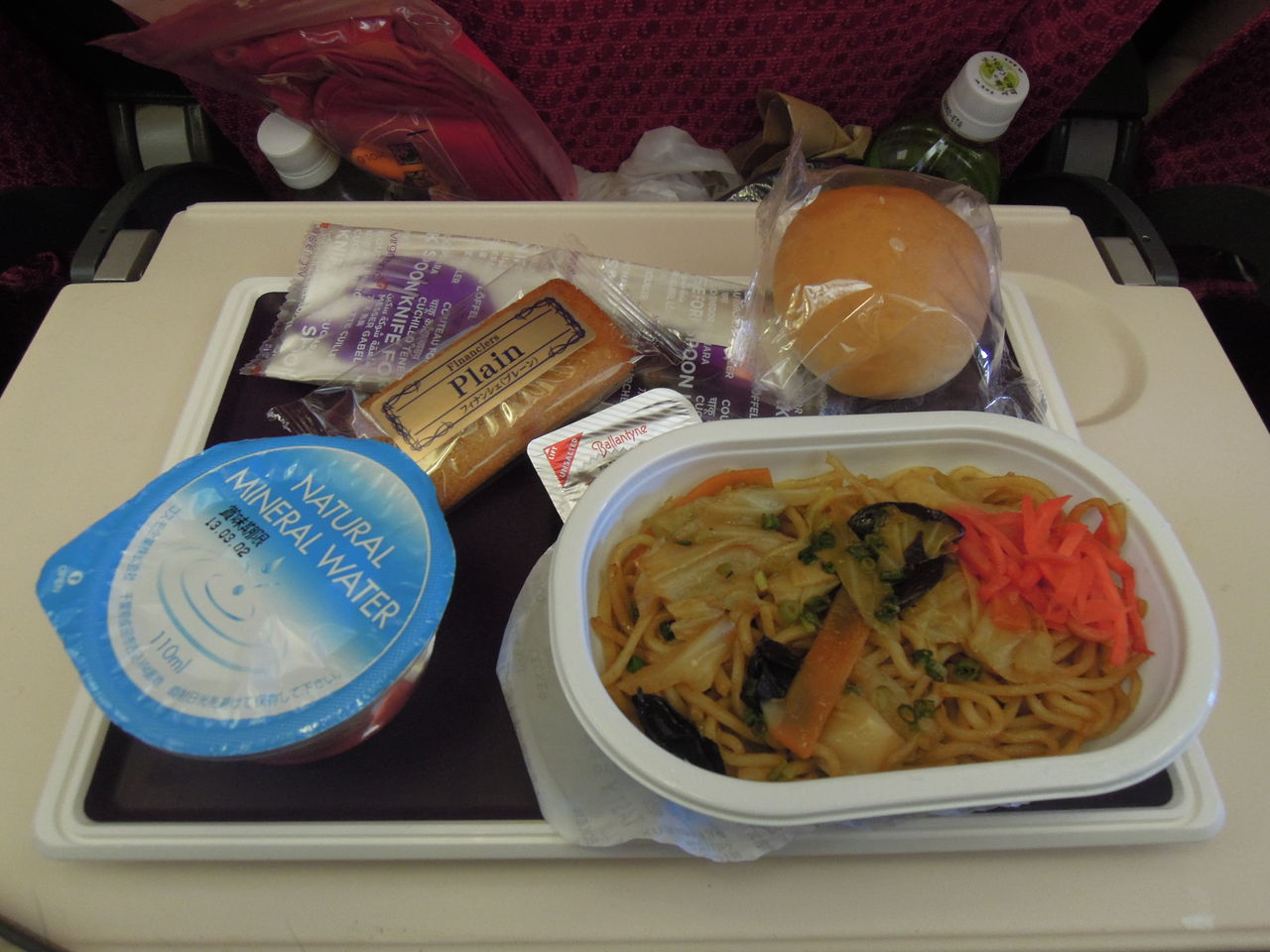 途中おにぎりorサンドイッチのサービスを経由して、2回目の機内食。