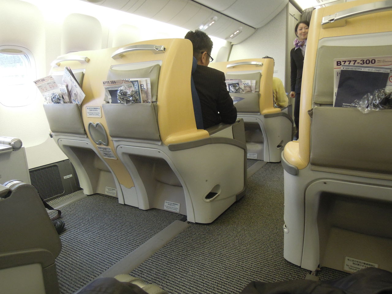 この便は前方席指定するとビジネスシートなので、しんどい体には有難い。