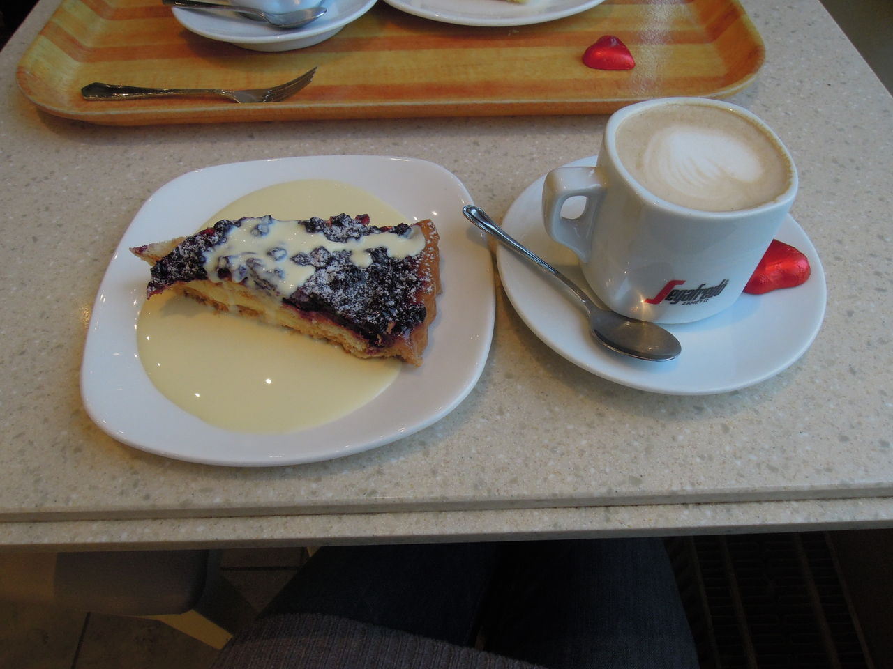 ブルーベリーケーキとカプチーノ。