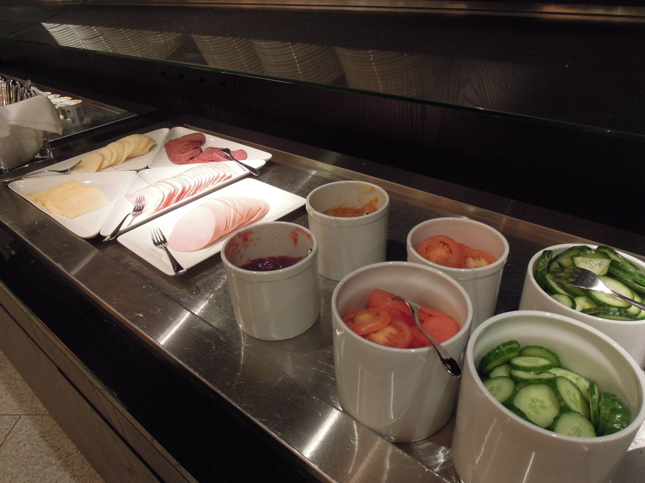 コールドミールはハム類とキュウリとトマト、チーズ。