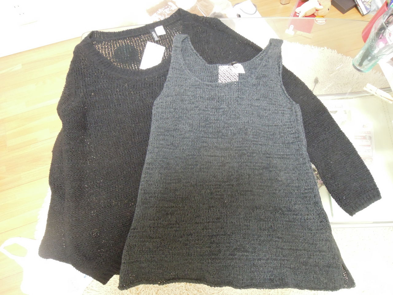 ダークな色合いのサマーニットとノースリーブ。