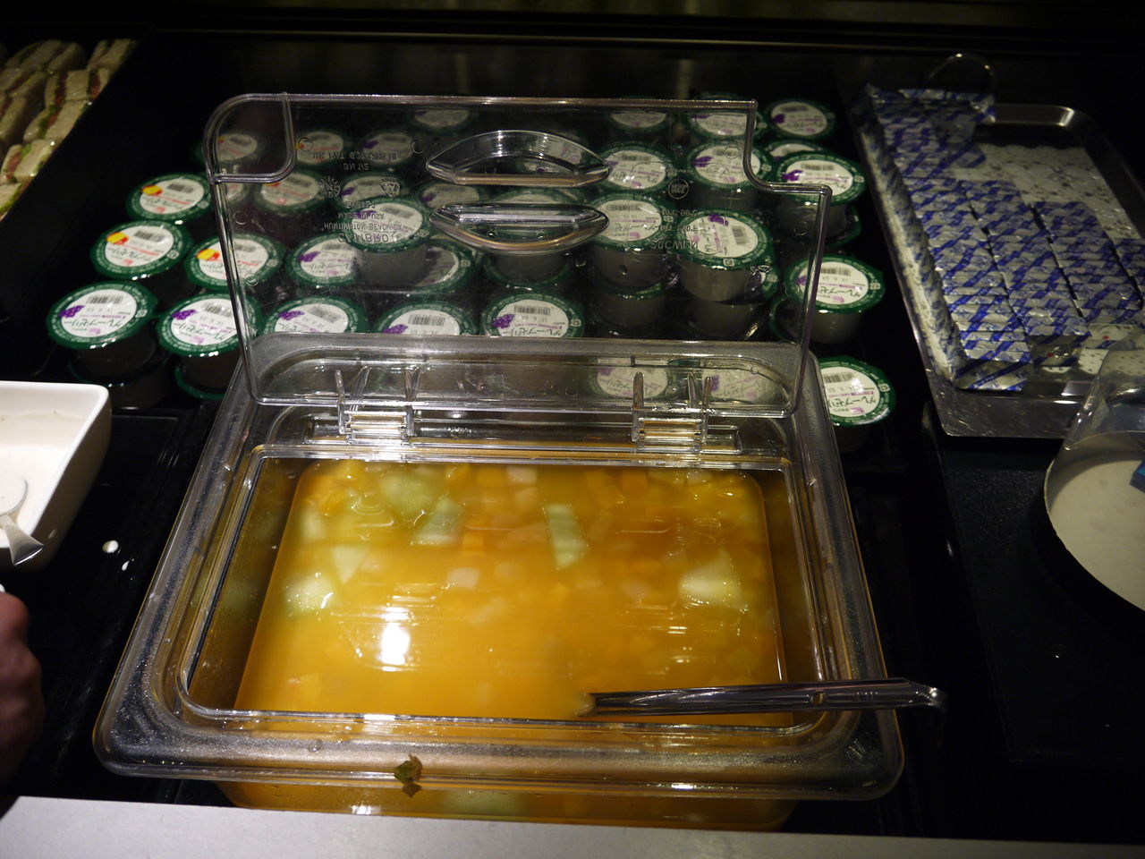 1階は結構コミコミだったけど、2階はだれもおらず、ラウンジ飯も手をつけられていない状態でした。