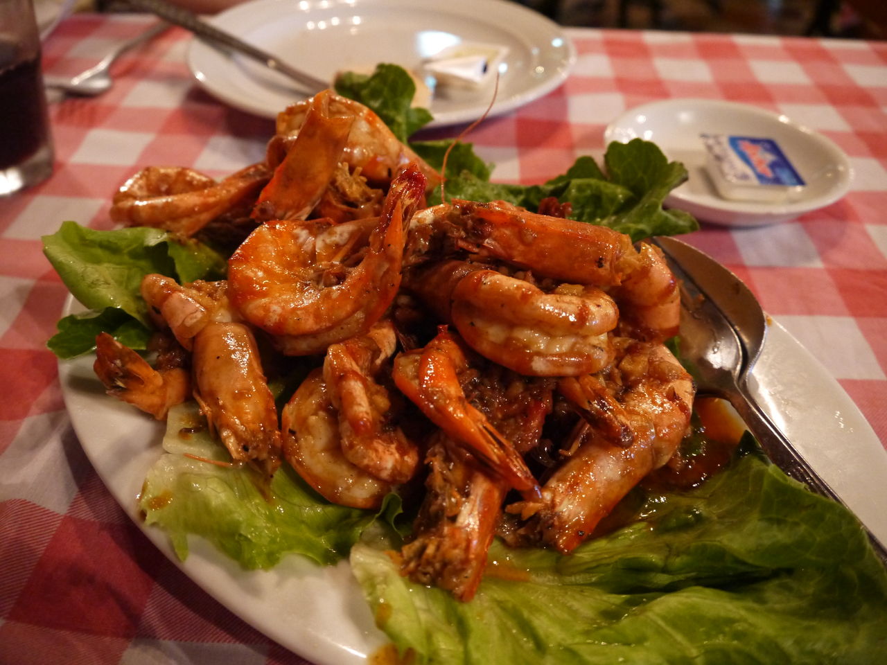 お気に入りのエビのガーリックソテー的なものはハーフもありましたが1人前で。