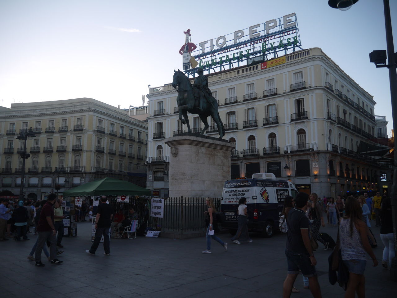 ソル駅の前の広場のプエルタ・デル・ソルは月曜日の20時を過ぎてるのに結構な人で賑わってた。