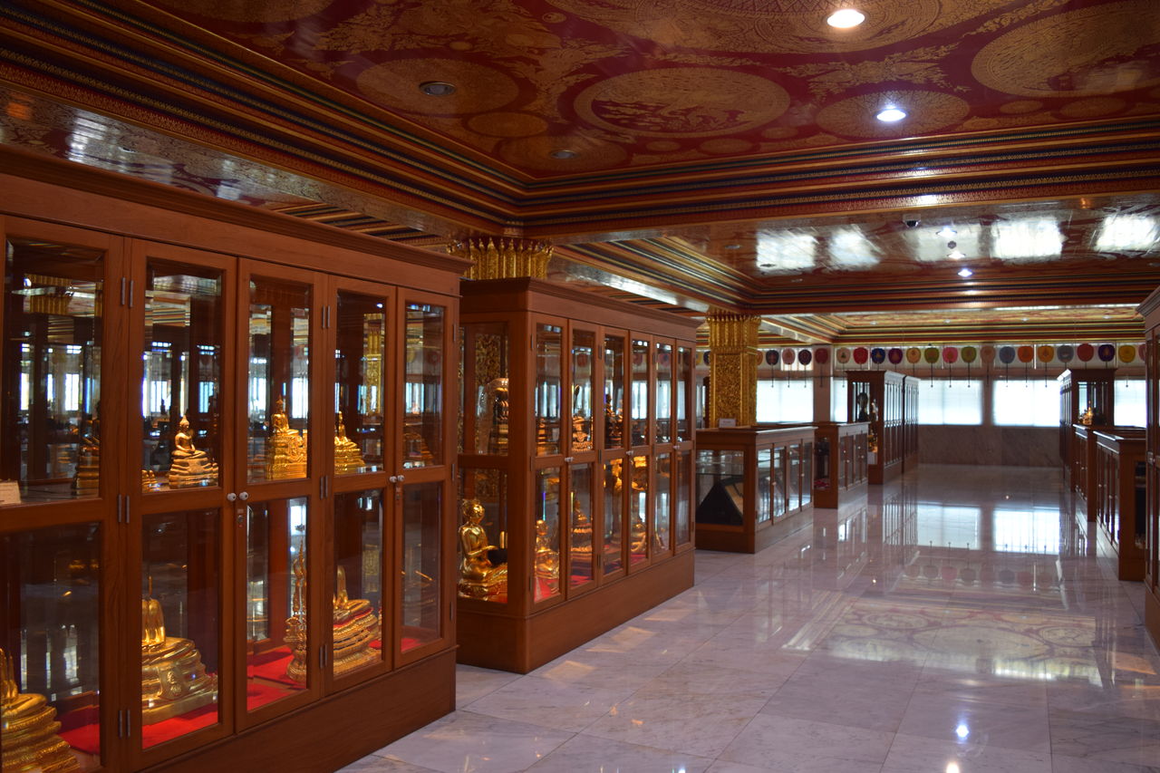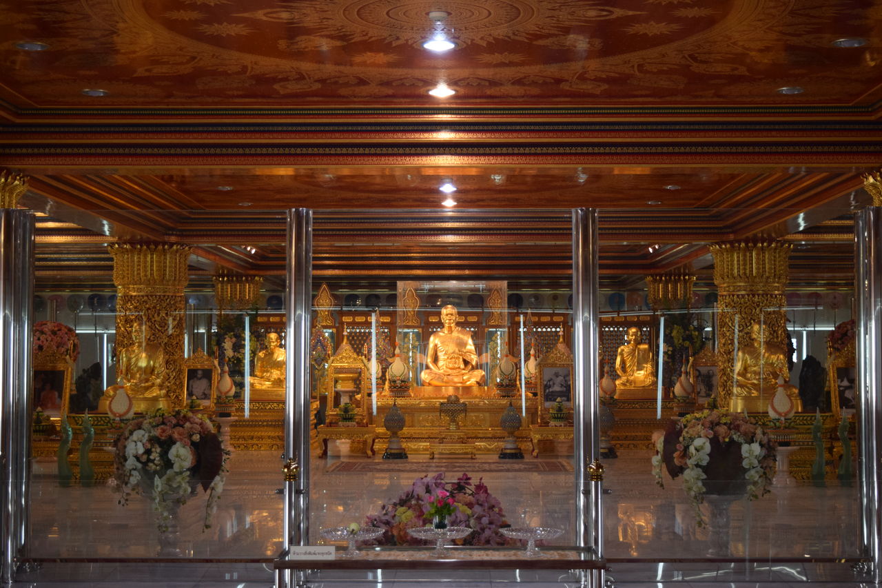 ガラスケースに囲まれた黄金の仏像が。