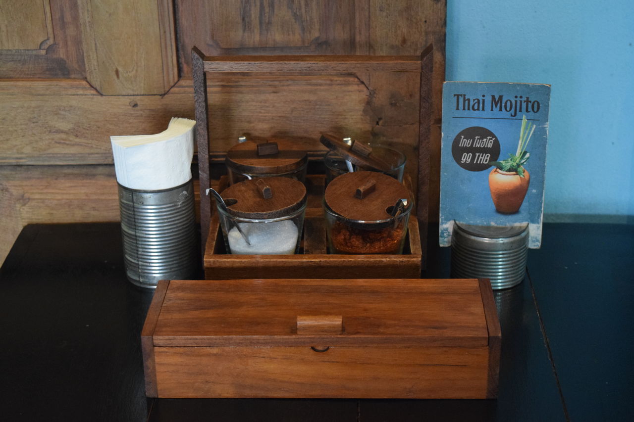 テーブルの上にある調味料入れやナプキン、飲み物のポストカード?もいい味出しています。