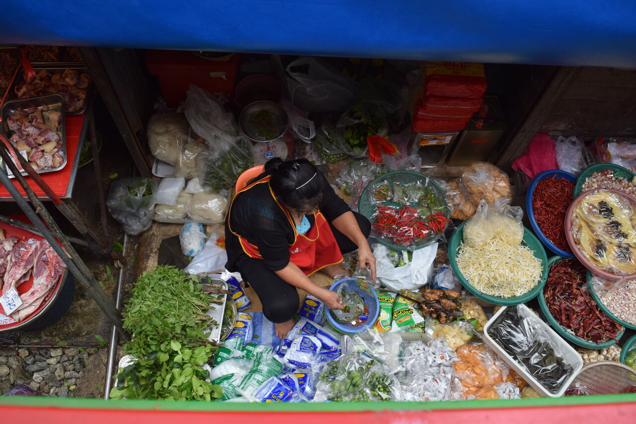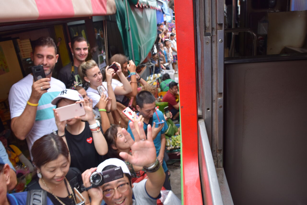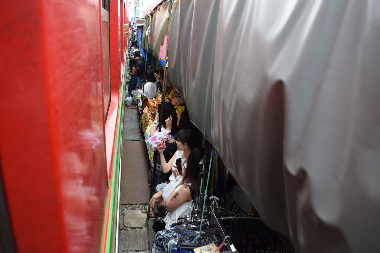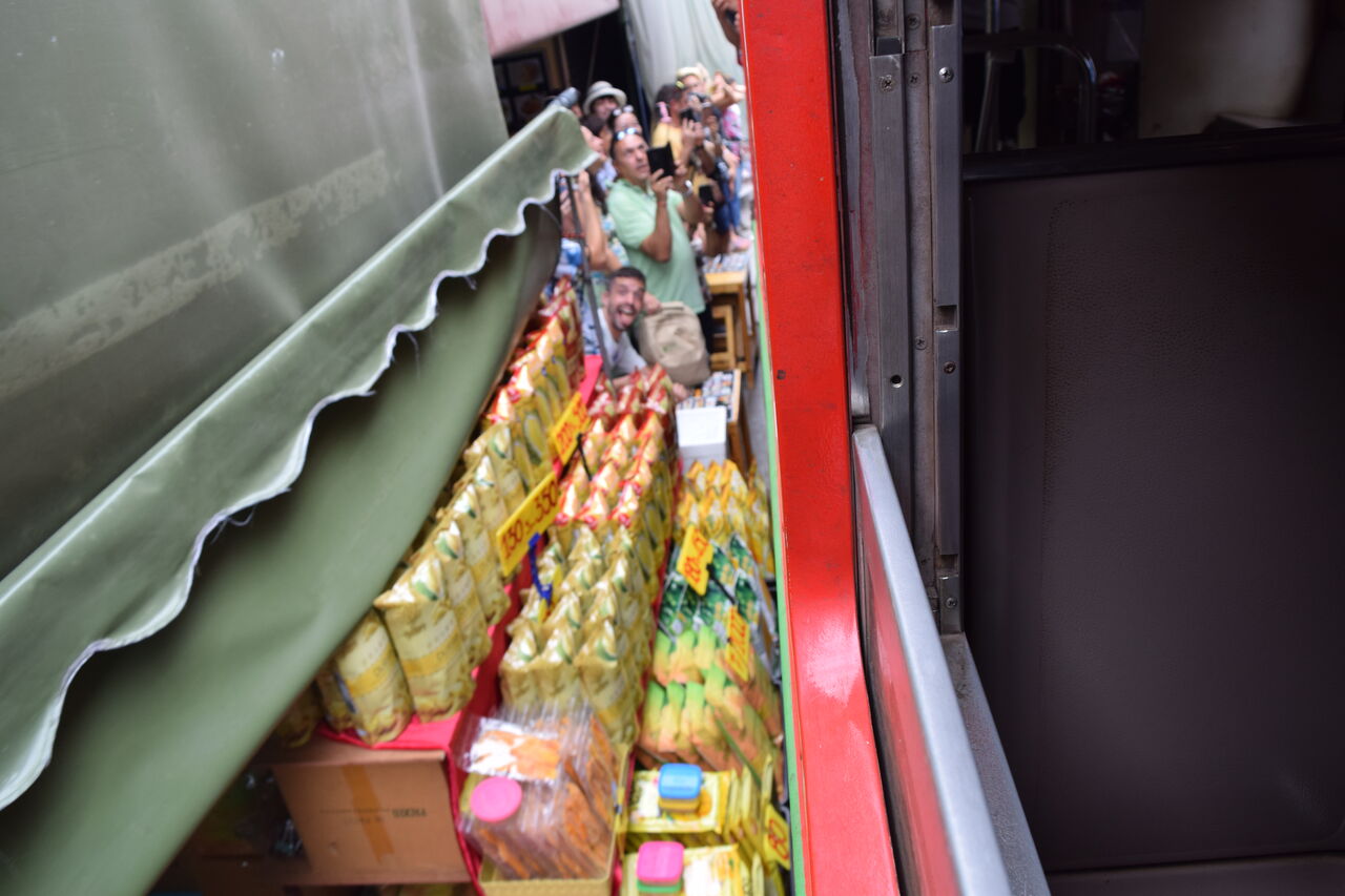 列車の中から見るメークロン市場のご紹介。