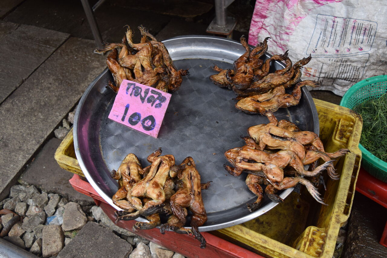 メークロン市場に戻って、とりあえずお腹空いたので何か食べよう。