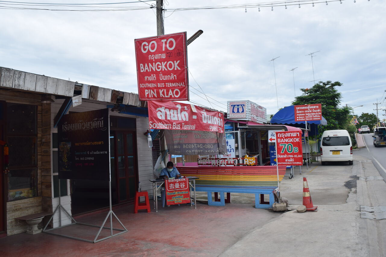 ロットゥー乗り場の近くに、バンコク行きのロットゥーの看板が。