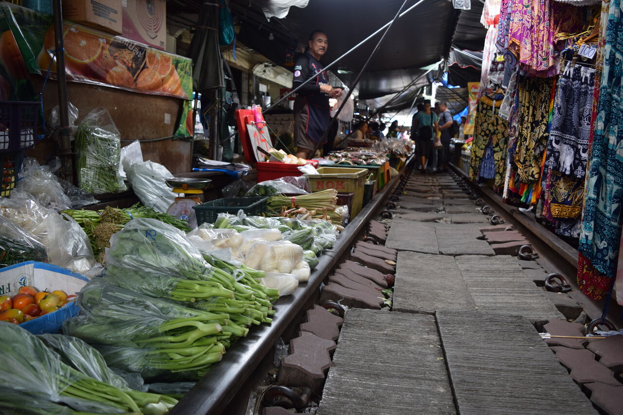狭い線路に所狭しと並べられた市場は見ているだけでも楽しい!