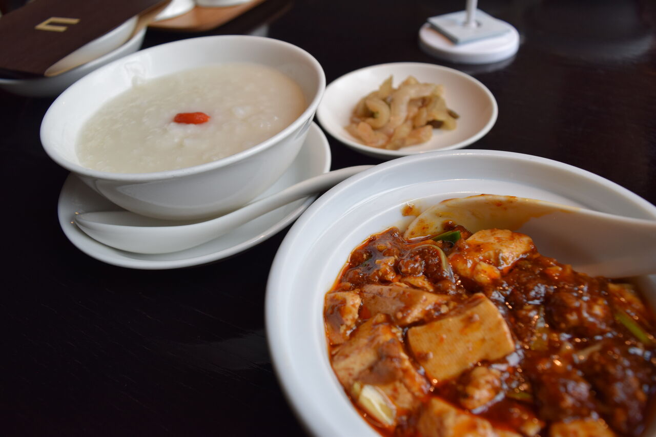 重慶式麻婆豆腐とクコの実入りヘルシー粥。