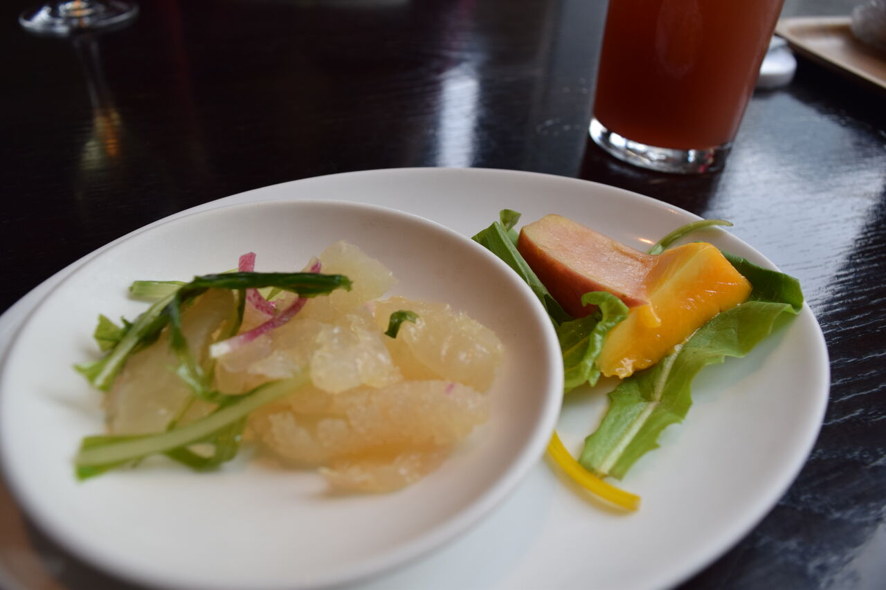 前菜はクラゲの冷菜と野菜の甘酢漬。