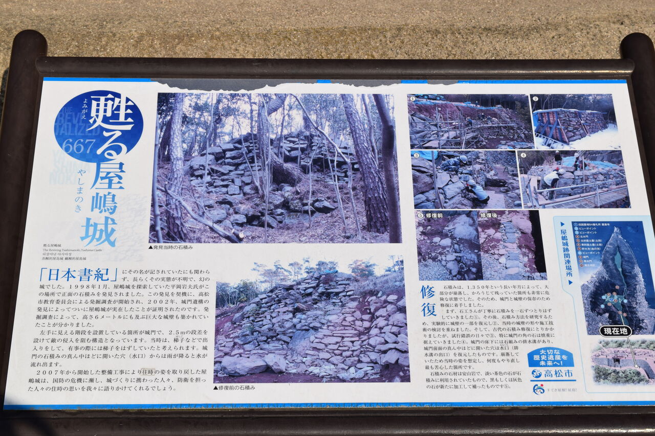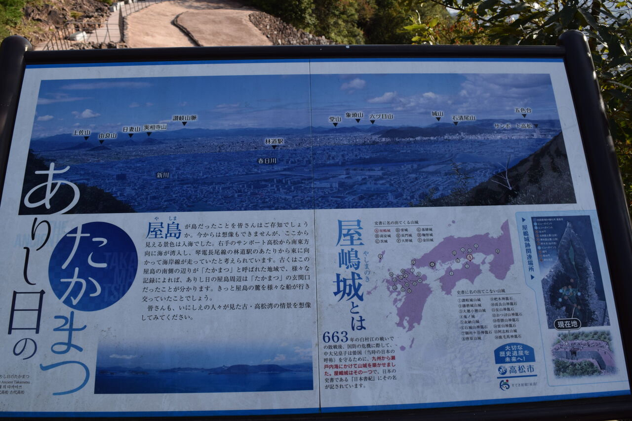 この屋嶋城は天智天皇が唐と新羅の侵攻に備えて築いたお城の1つ。