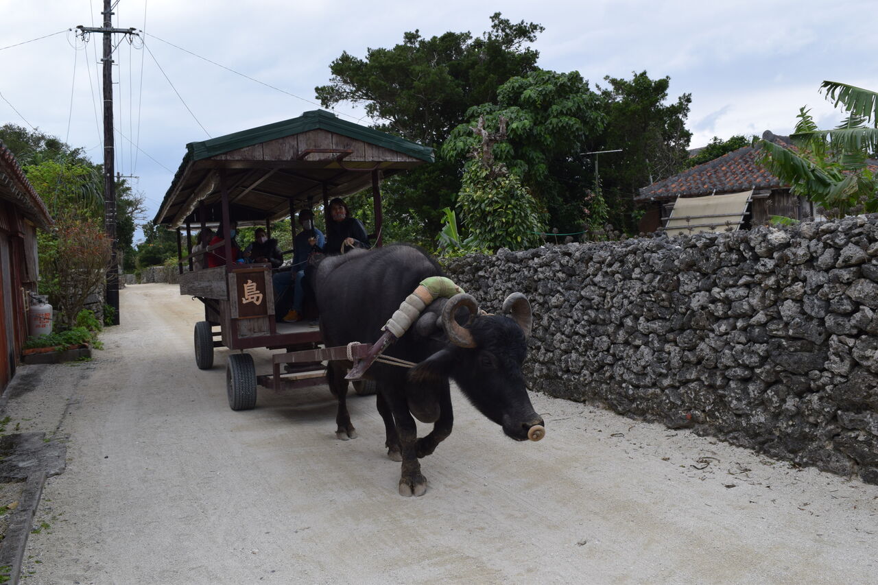 さて、送迎バスの時間になったので、水牛車に乗った竹富観光センターに戻ります。