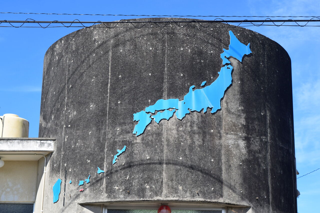 日本地図が建物に描かれています。