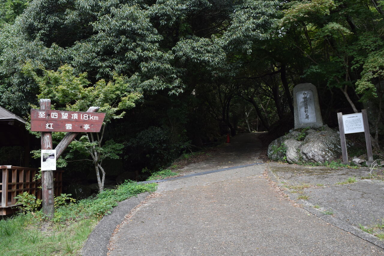 この奥へ進むと歩いて山頂へ行くことができる。