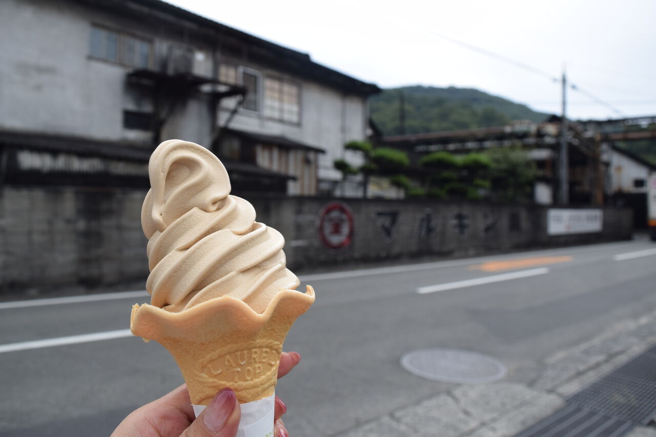 お土産のお醤油を買って、醤油ソフトも食べてみる。