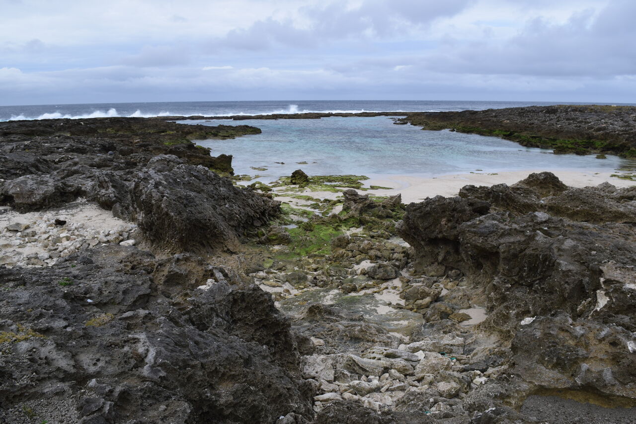 岩も多いのですが、砂浜もあって、人も多くなさそうなのでよさげ。