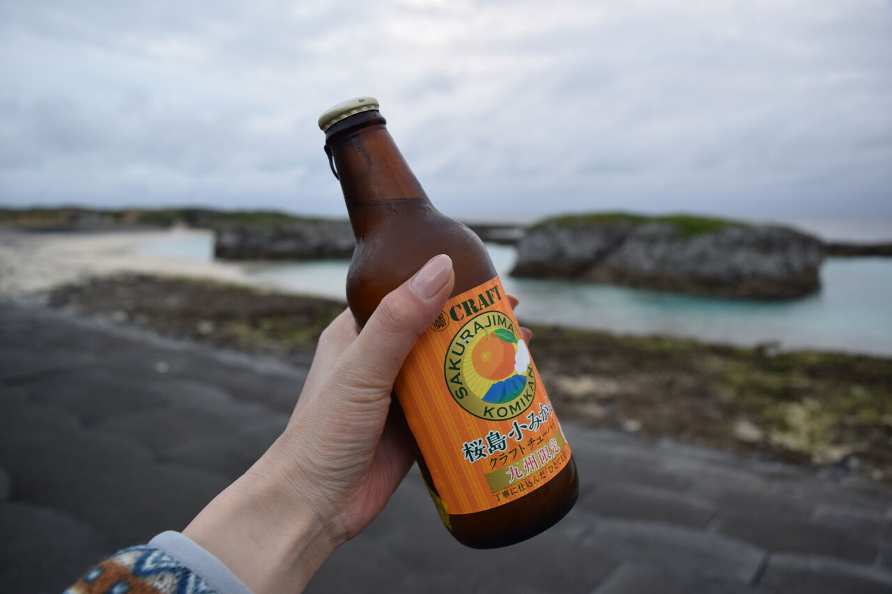 九州限定の桜島クラフトチューハイってのを買ってスギラビーチで飲む。