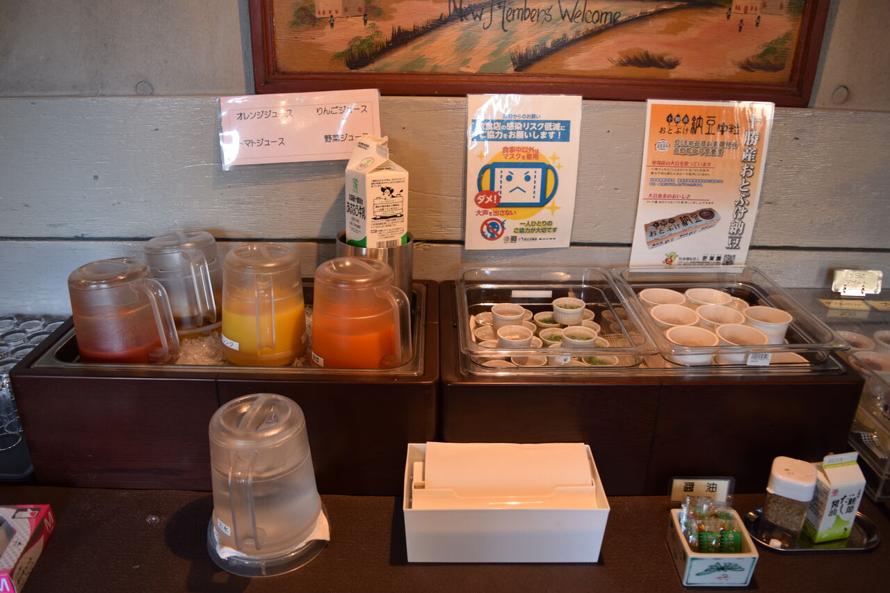 その他サラダや海苔や納豆等のご飯のお供もセルフ。