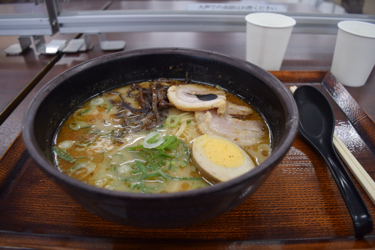 時間がヤバくなってきたので、空港まで戻り、前回と同じ熊本ラーメン。
