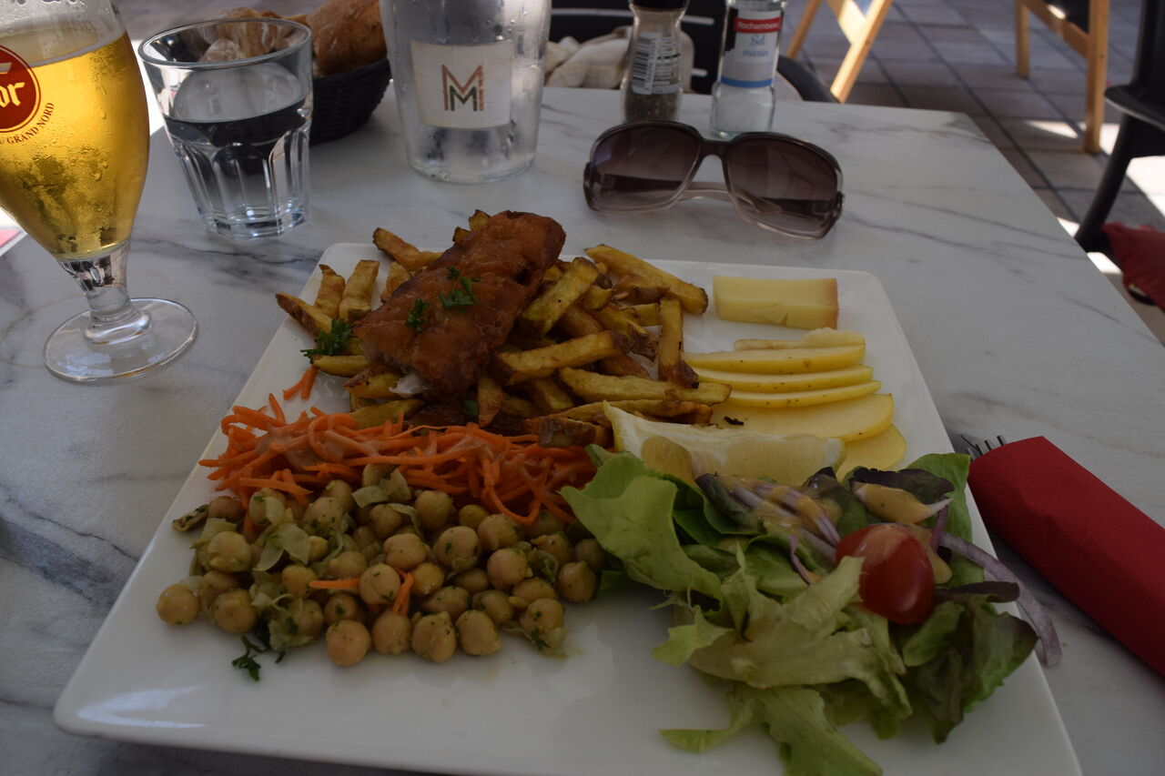 サラダ、チーズ、フィッシュ&チップスとバランスよくあるけど、ちょっとお味も量もイマイチだったな。