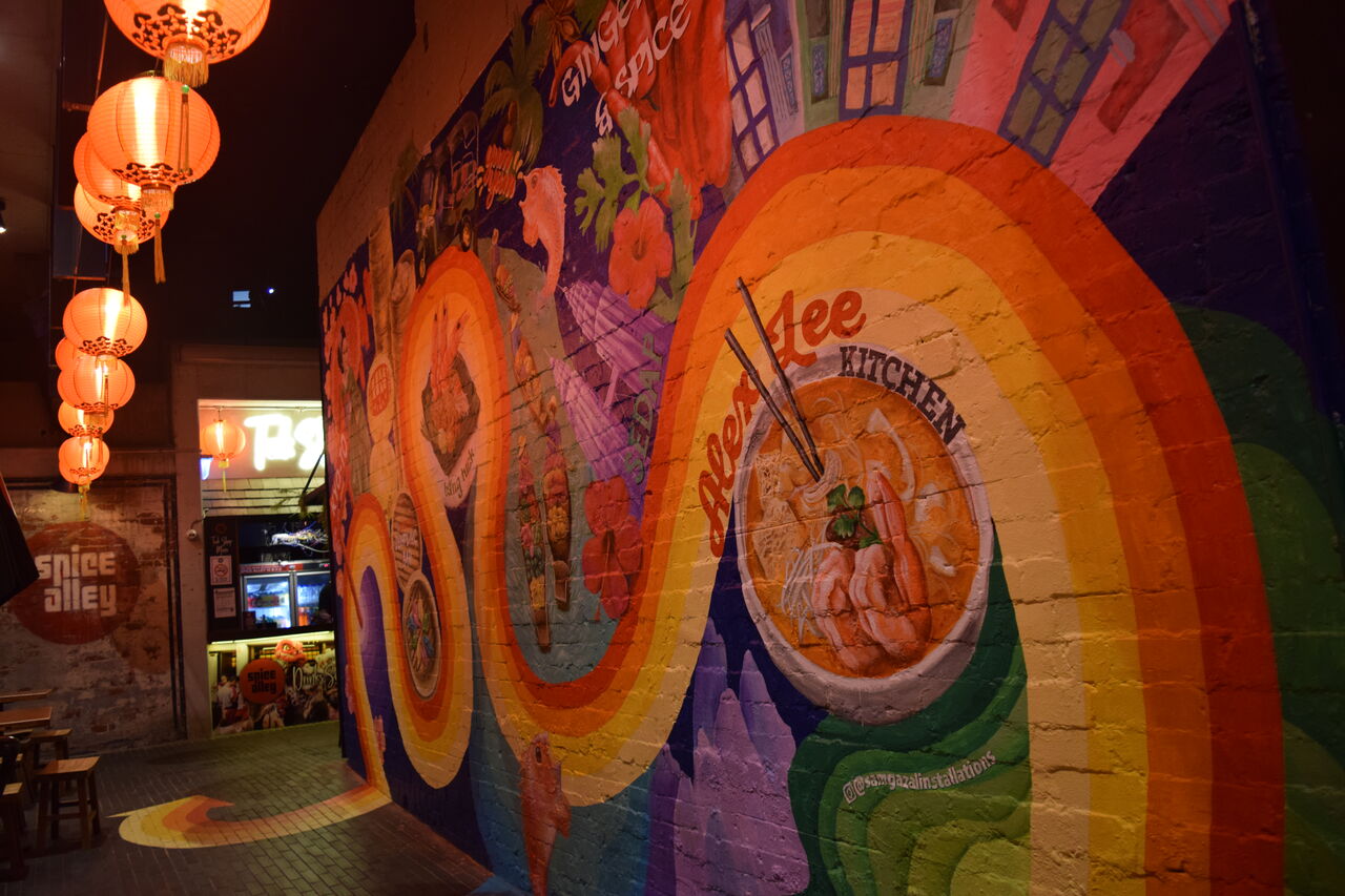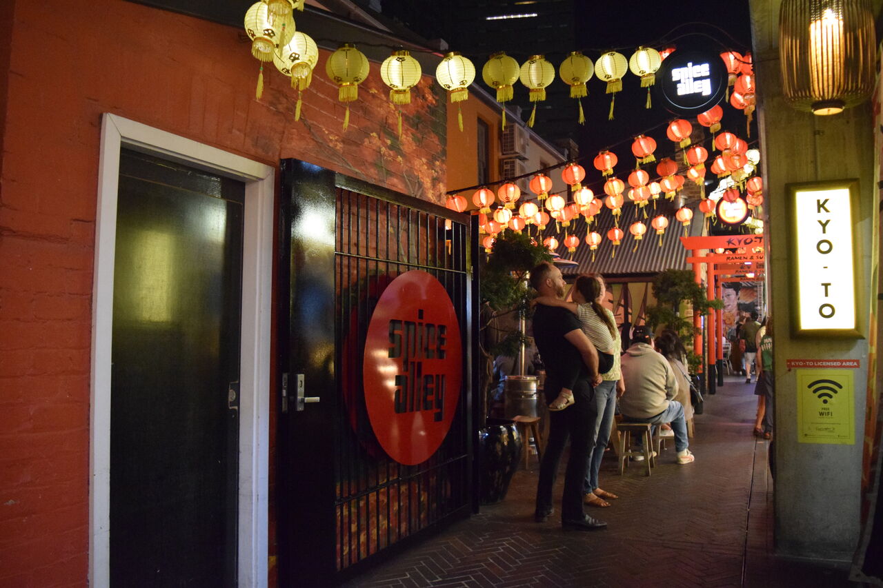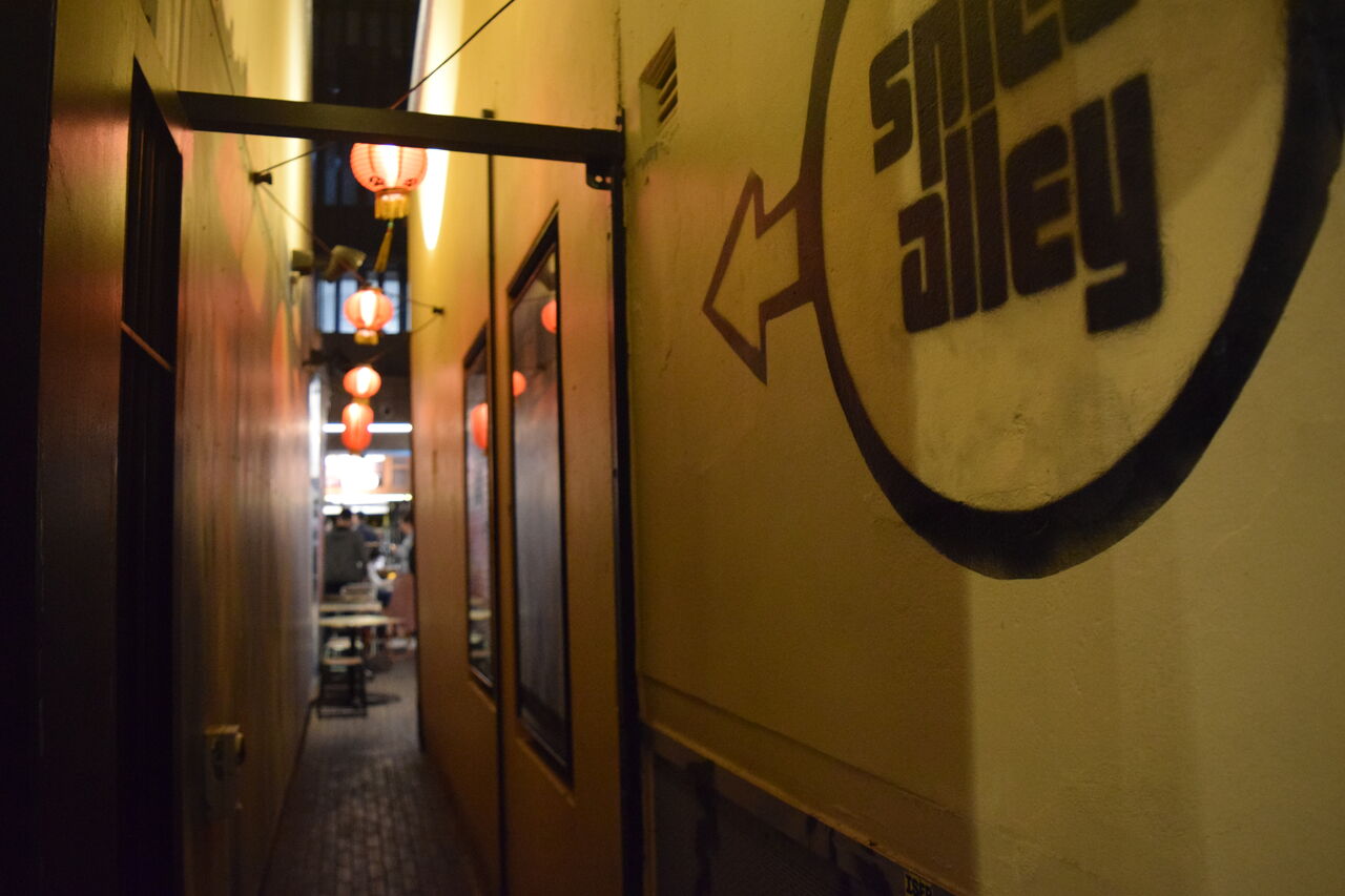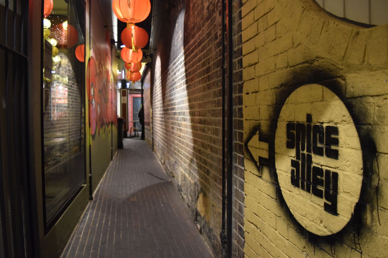 人が1人は入れるくらいの細い道だけど、スパイス・アリーと大きく書かれているからわかりやすい。