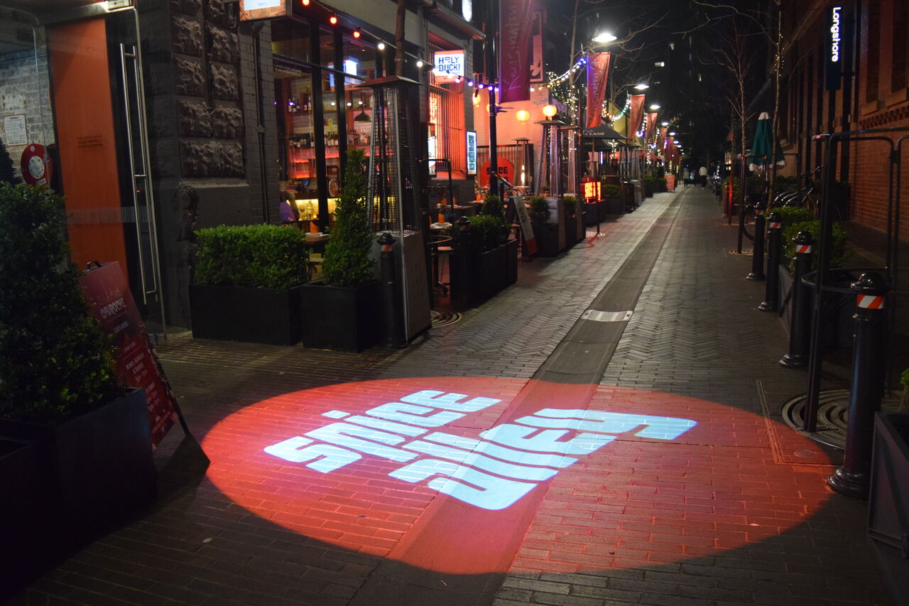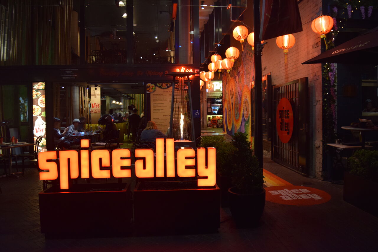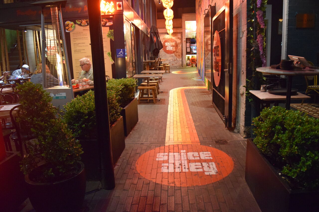 ココはスパイス・アリーの前の道路で、ライトでスパイス・アリーの文字が浮かび上がるようになっている。