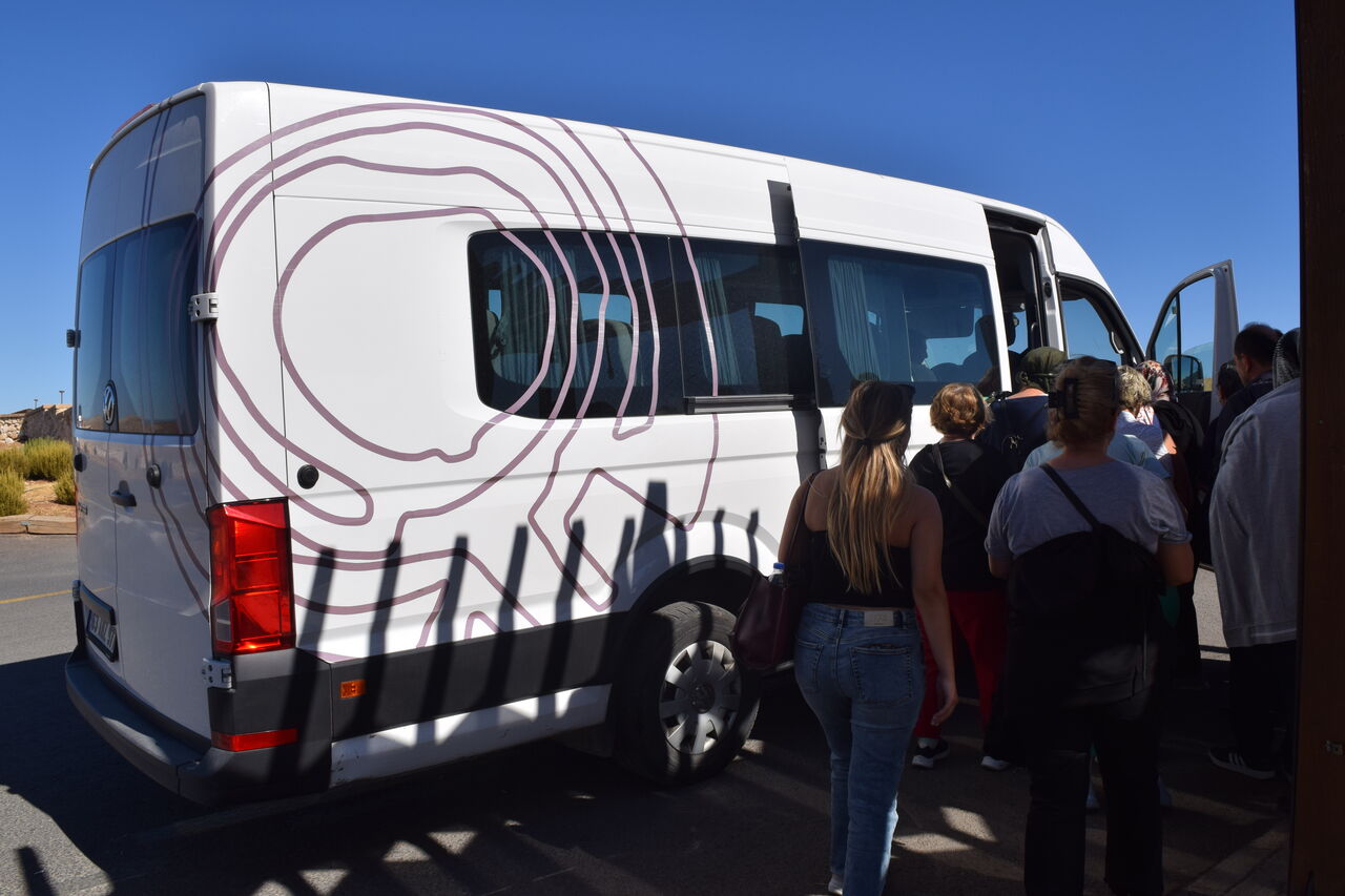 遺跡までは小さなバスで。
