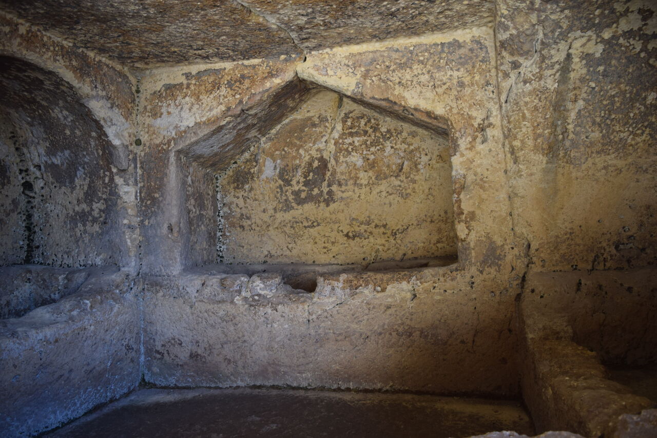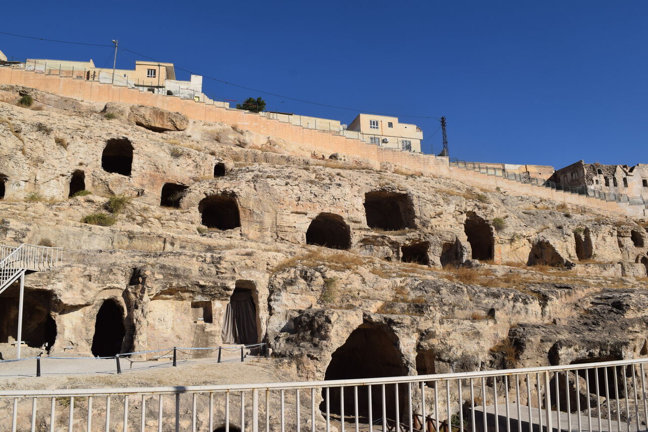 岩穴住居的にも見えるローマ時代の岩窟墓地で、入場無料で見ることができます。