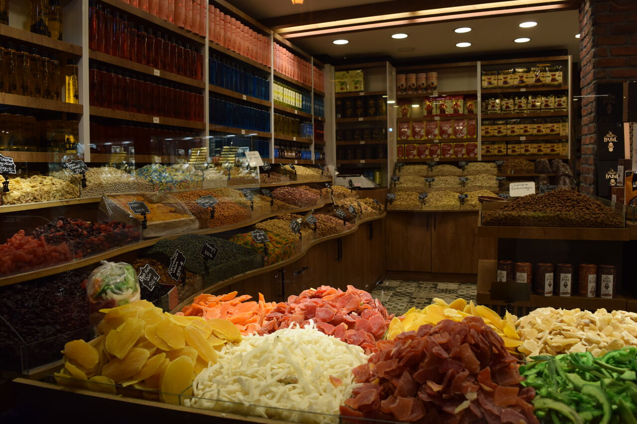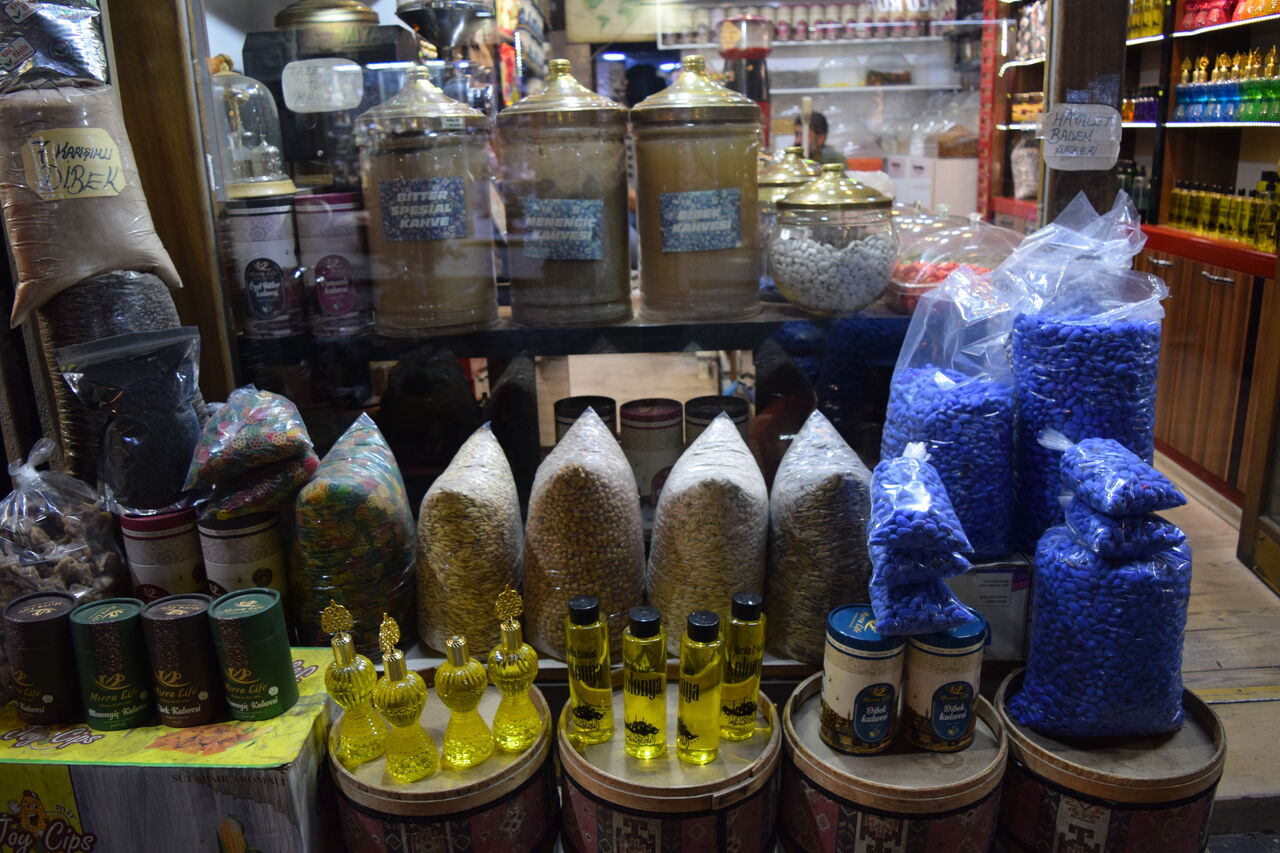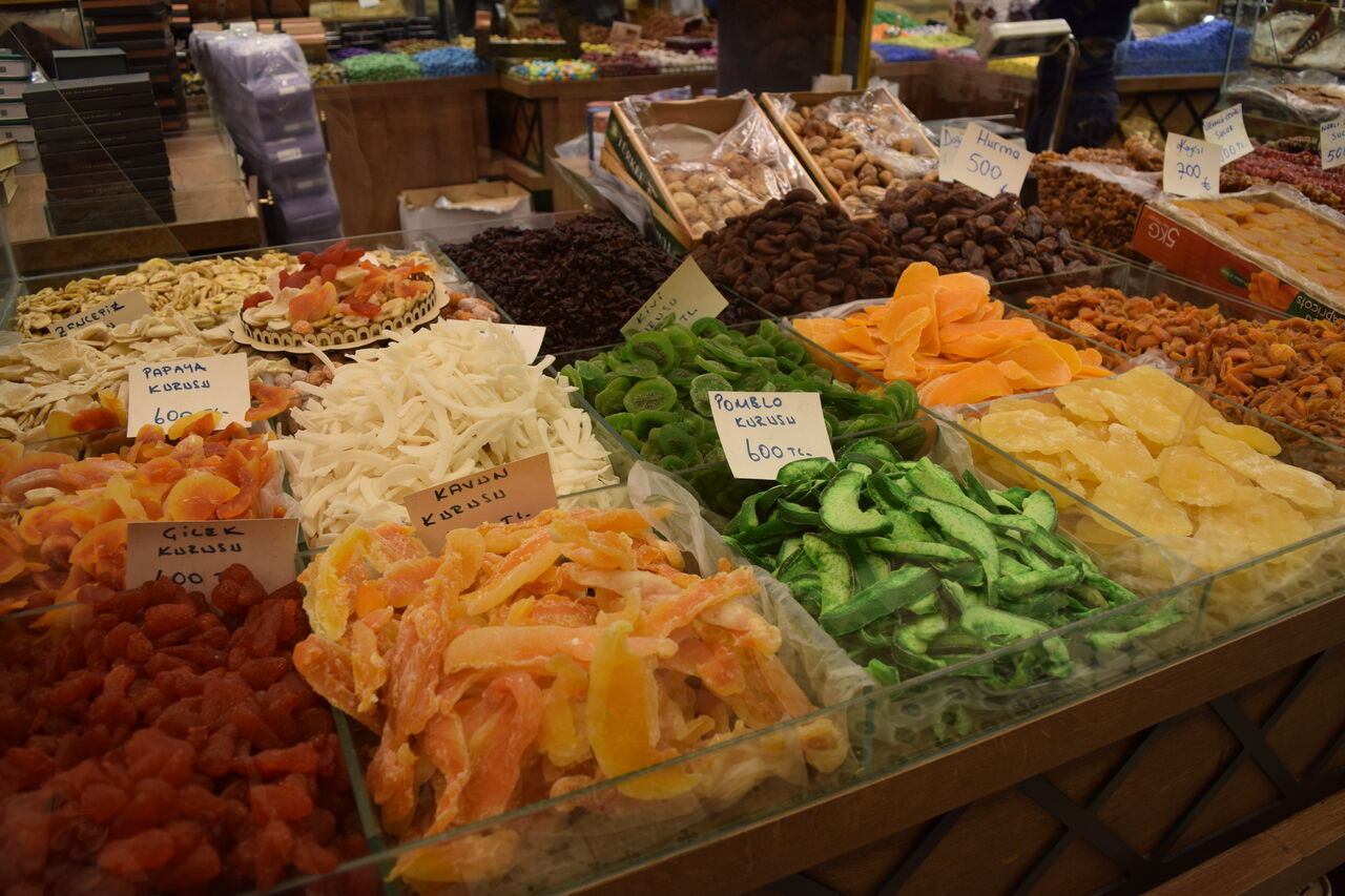 トルココーヒー、ドライフルーツ、ナッツ等いろいろ。