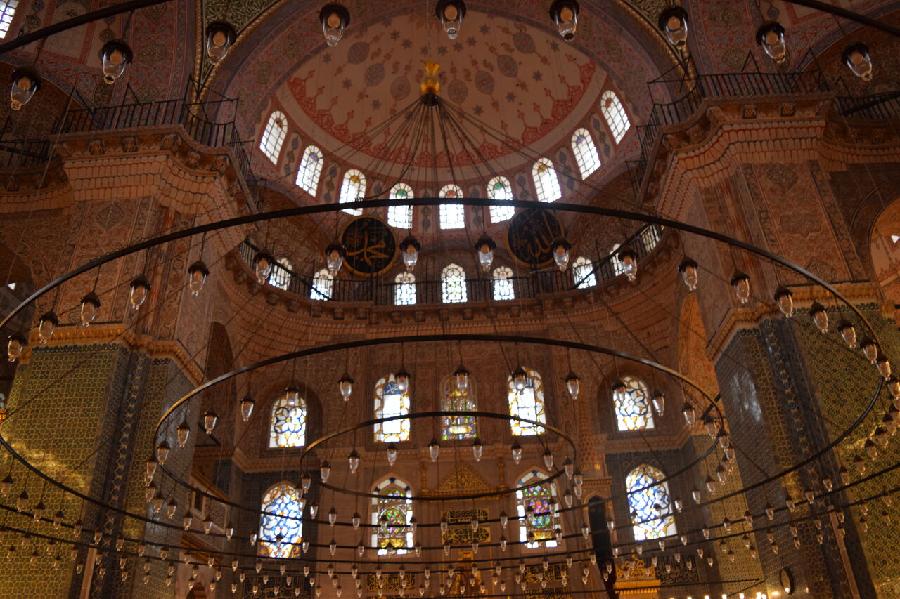 タイルやシャンデリア等、今までのモスクとはすごい違いの豪華さ!