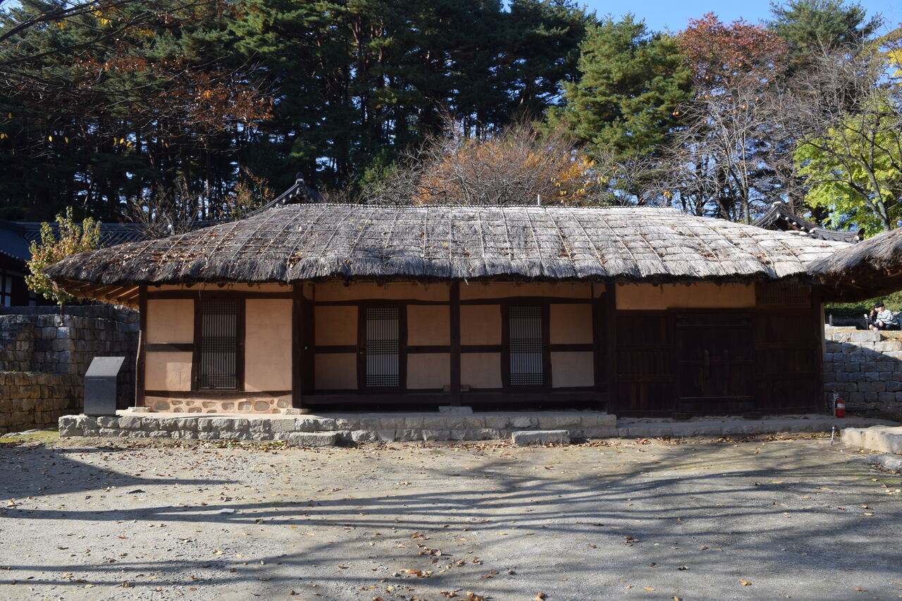 母屋?住まいの外に出ると藁葺きっぽいお家が。