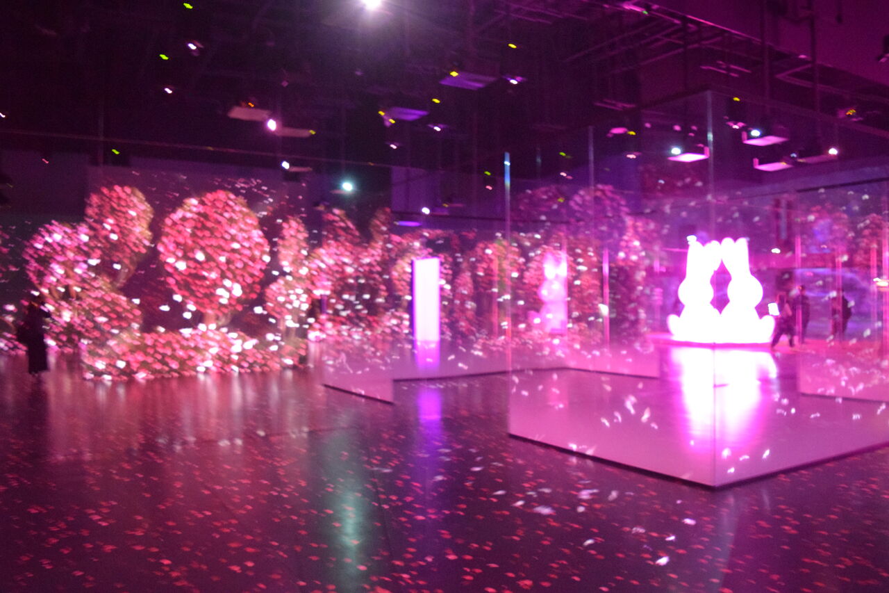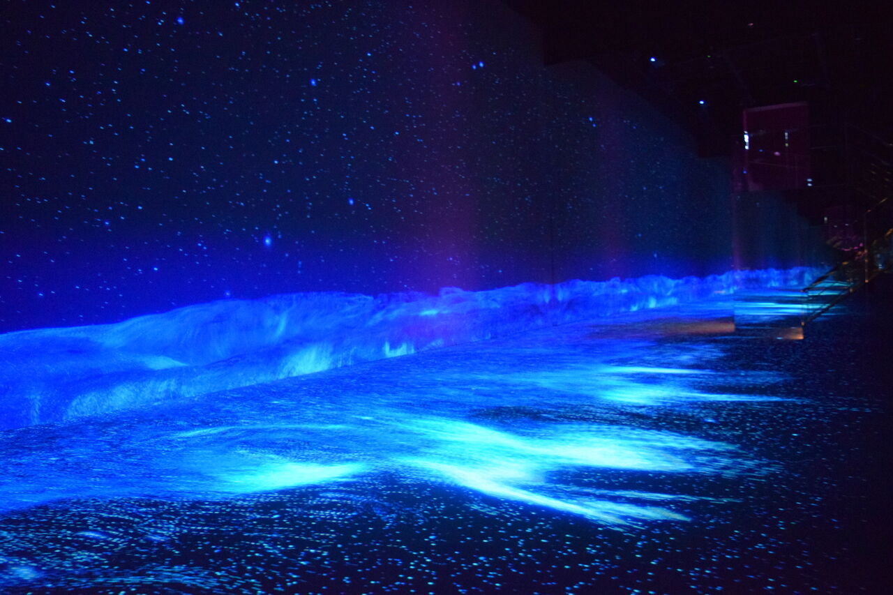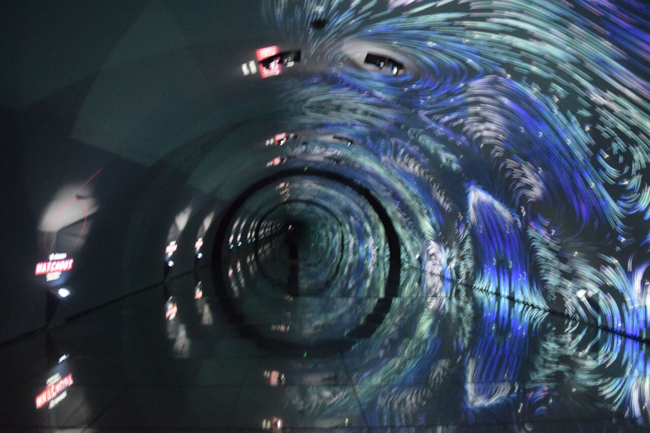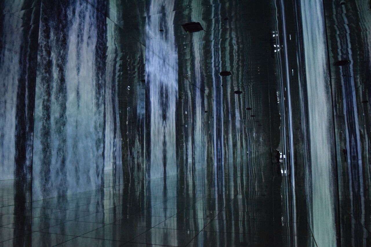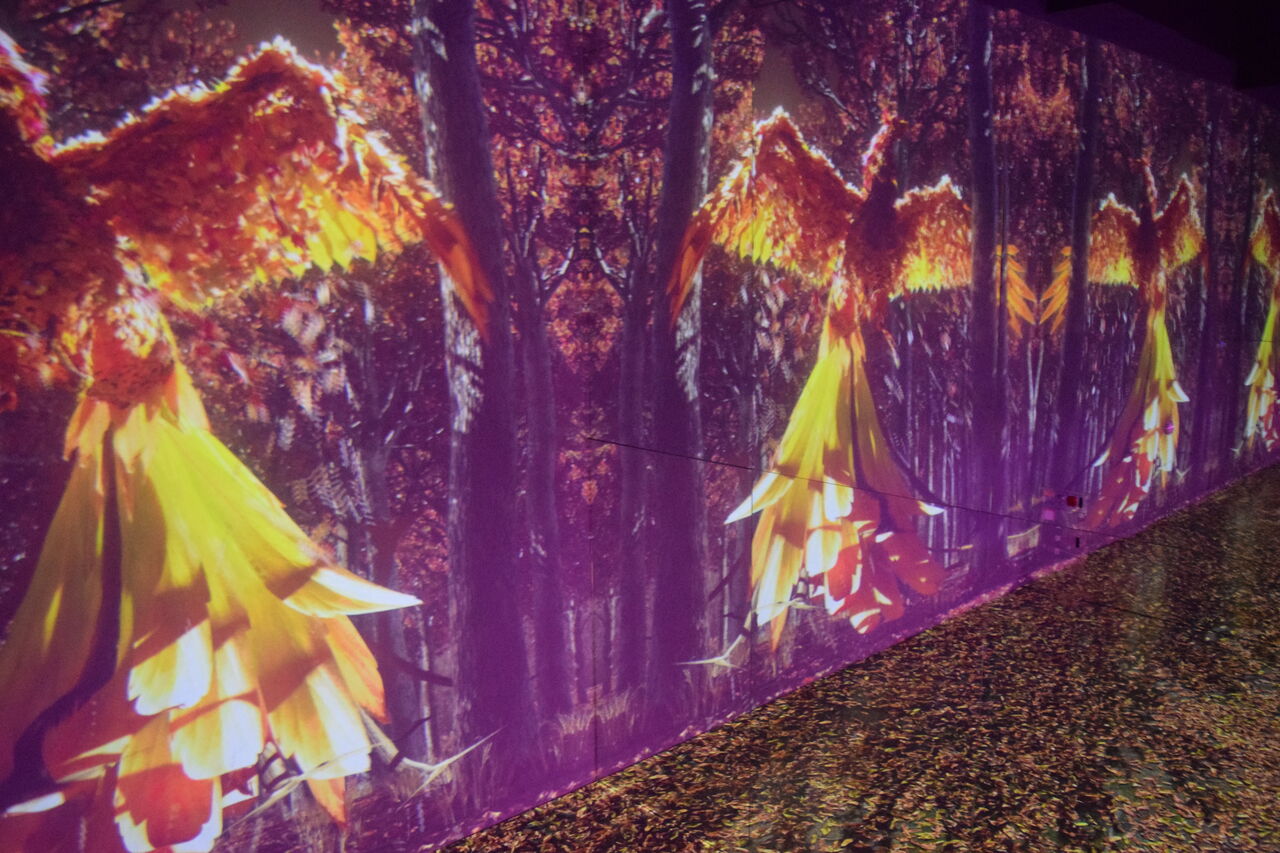 ココは奥は鏡になっていて、壁から天井にアートが映し出される。