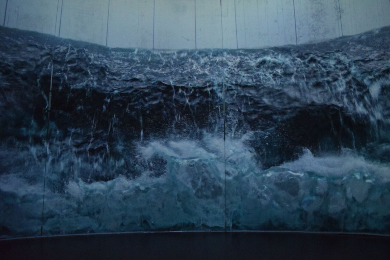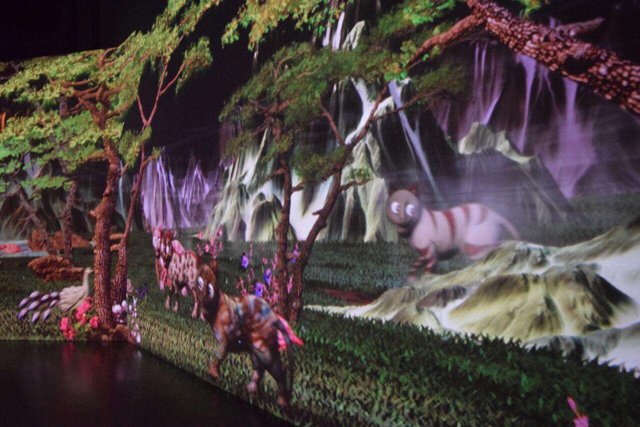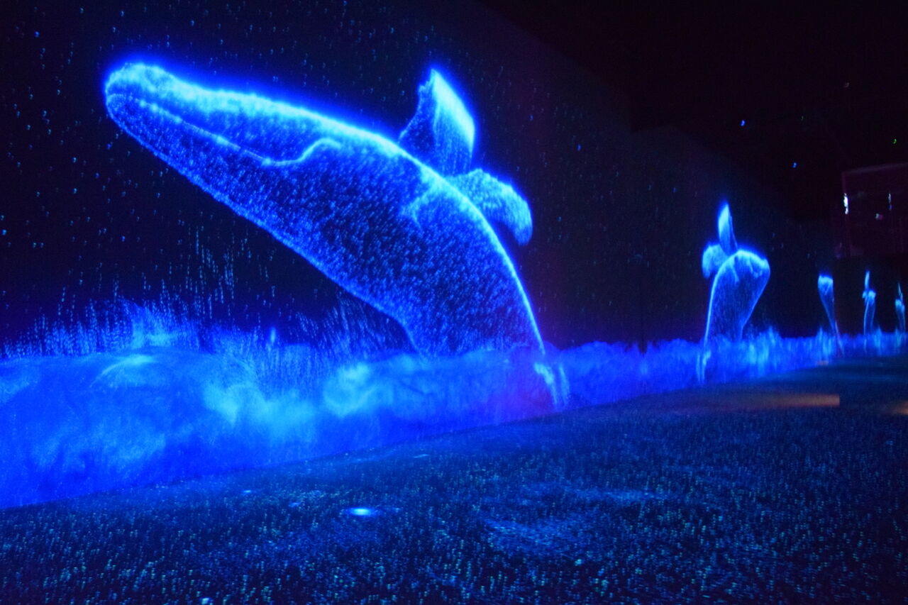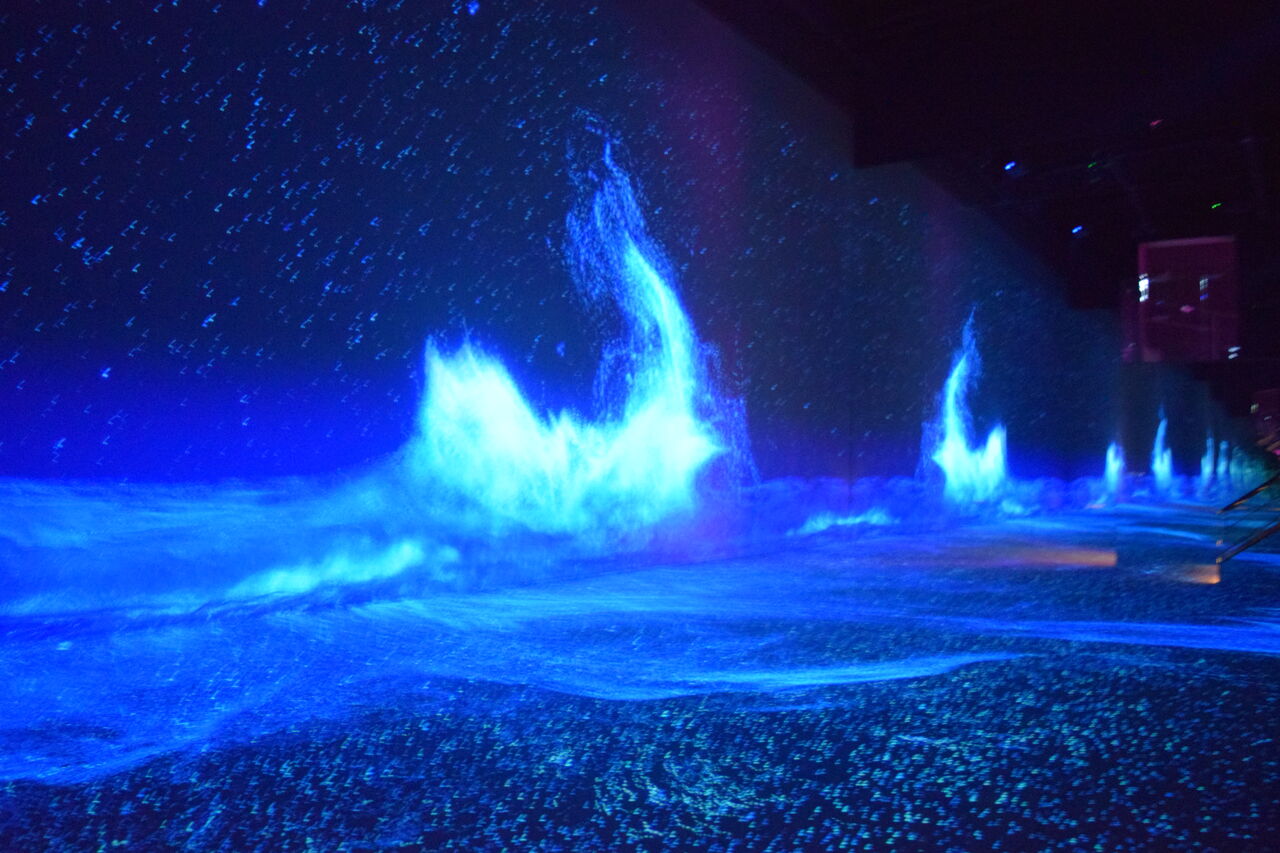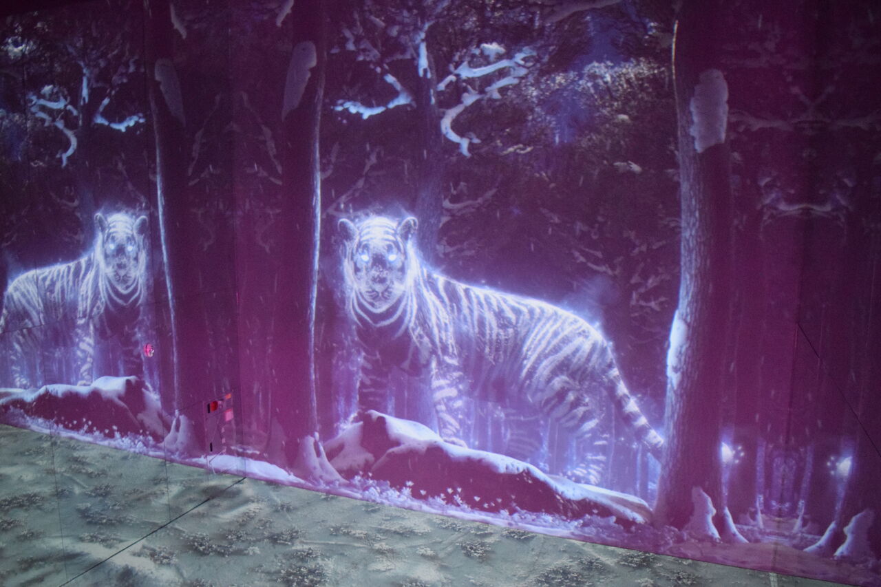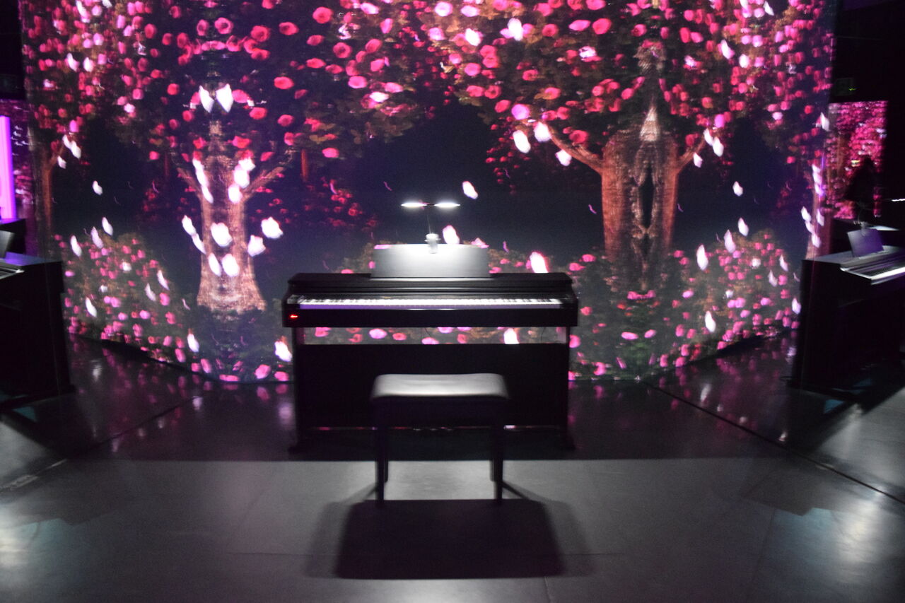 ココは奥は鏡になっていて、壁から天井にアートが映し出される。